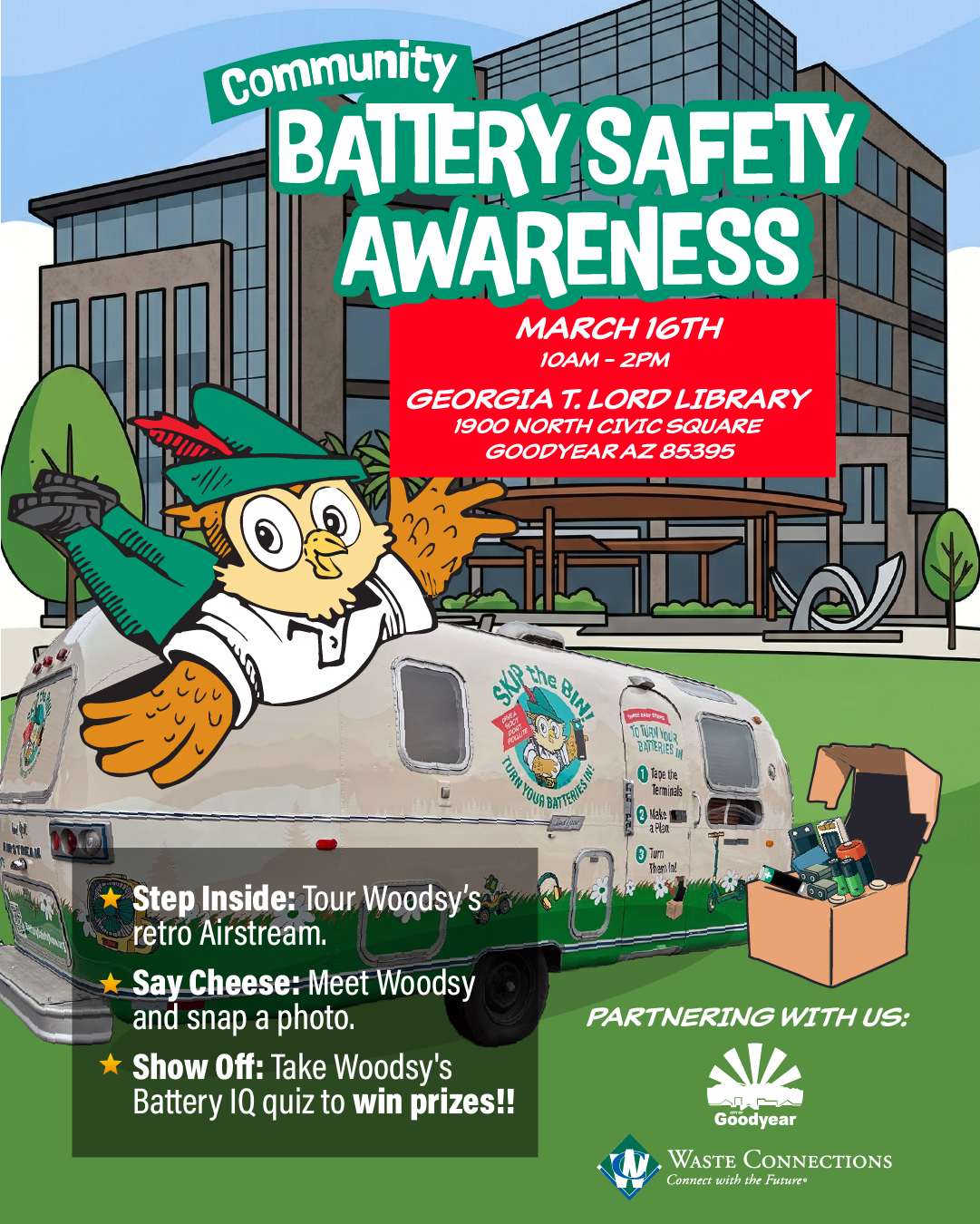 Community Battery Safety Awareness RSVP, Free Event Monday March 16th, 202610am – 3pmGeorgia T. Lord Library1900 North Civic Square