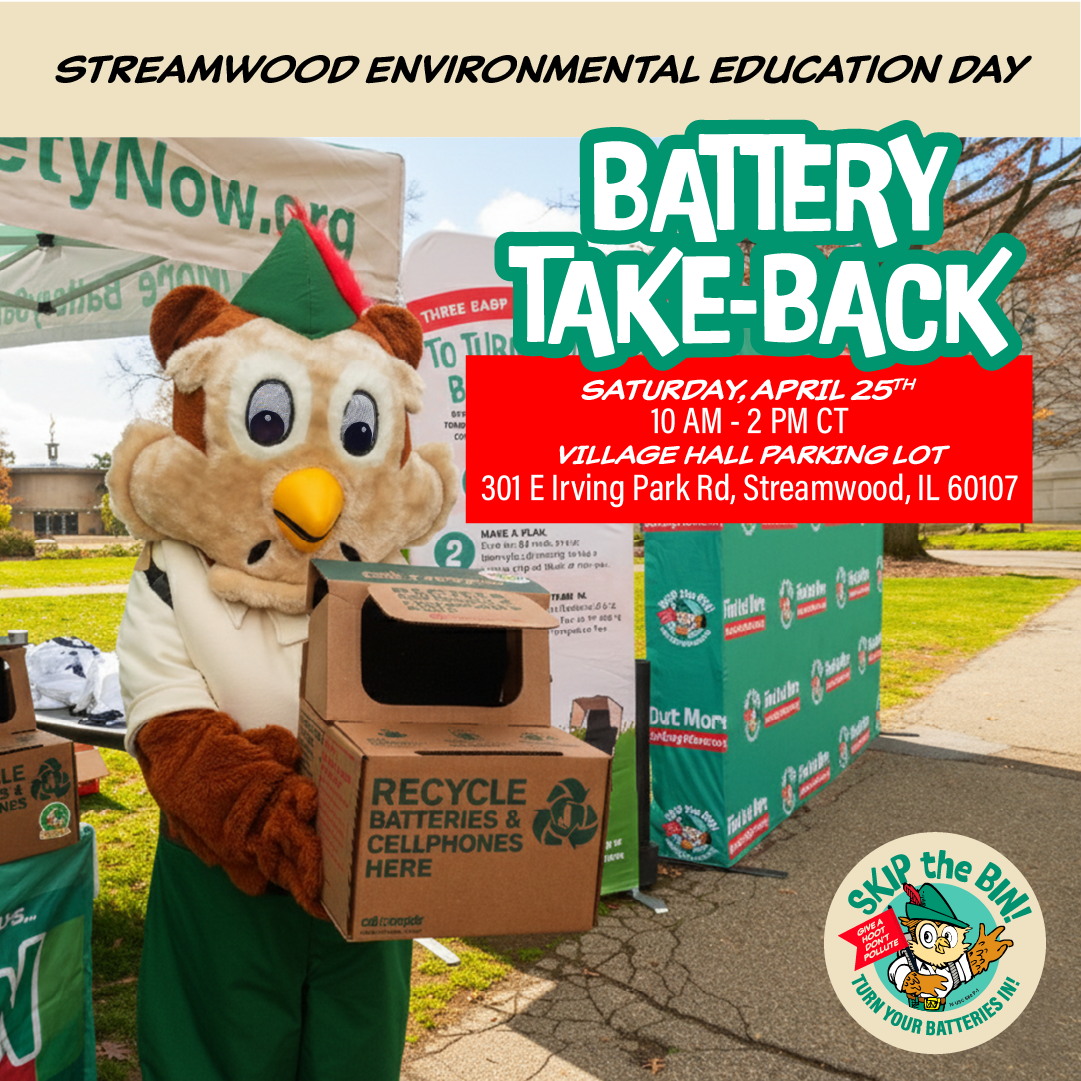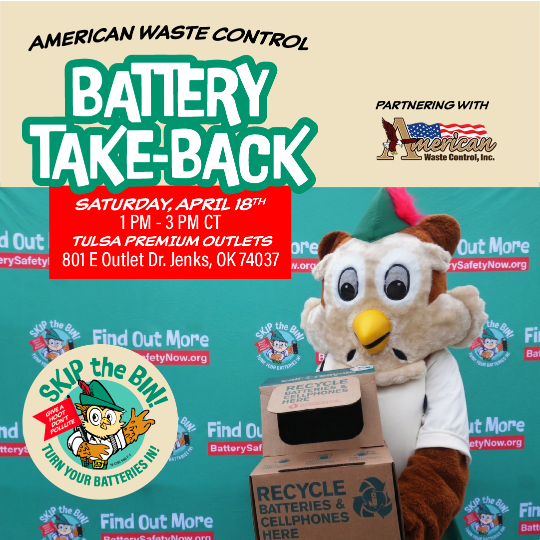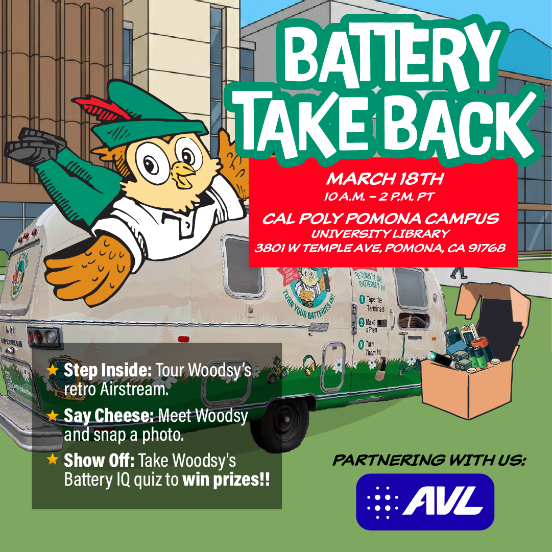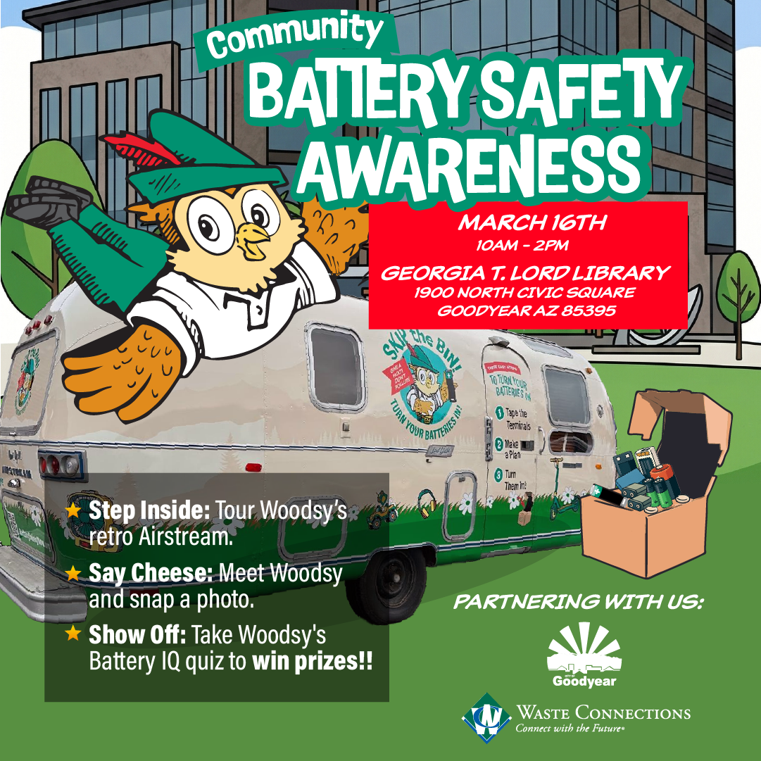 Woodsy Owl is on the road across the U.S., spreading the word about safe battery disposal! Want to bring Woodsy to your community? Click below to learn how to host or sponsor a Skip the Bin event.