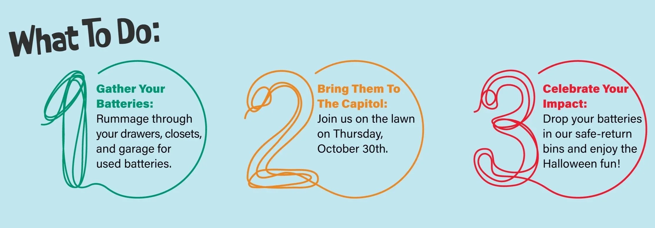 Join us for a fun, family-friendly free battery take-back event at the Washington State Capitol, and help keep your community safe from battery fires!