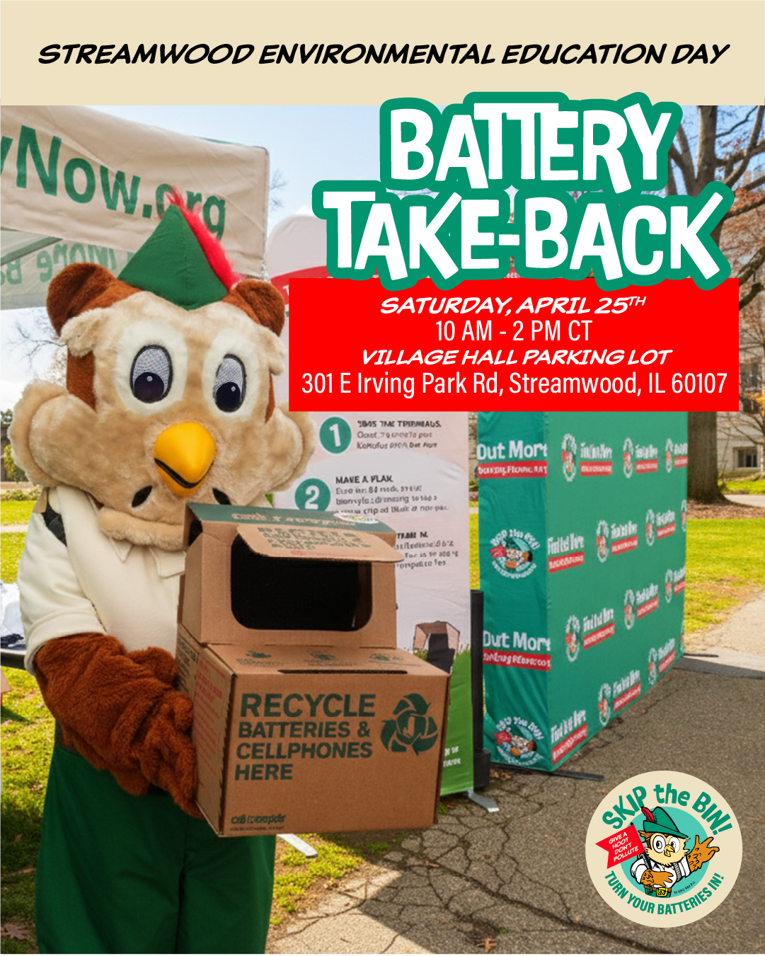 Join us in Streamwood, IL for a fun, free battery take-back event and help keep your community safe from battery fires!